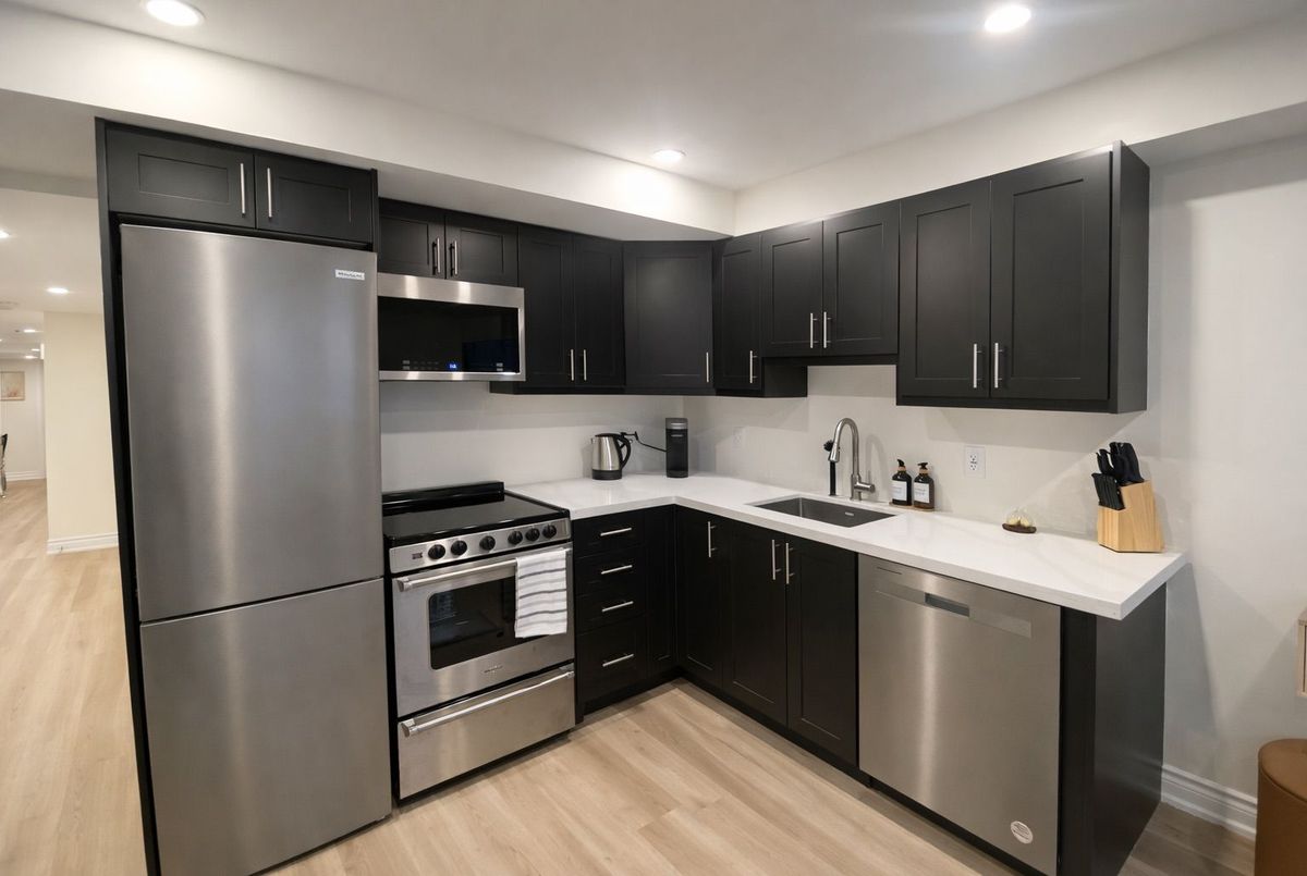 Welcome to an exceptional home where thoughtful design and upscale finishes come together to create a truly luxurious yet highly functional living space. Set on a premium ravine-front lot, this property offers peaceful, breathtaking views and a beautiful connection to nature. With over $90,000 in upgrades including numerous builder enhancements, this home delivers elevated style and everyday comfort. The main level showcases a chef-inspired upgraded kitchen featuring high-end stainless steel appliances, a waterfall island, a striking arrow-and-bone backsplash, and valence lighting that adds the perfect ambient glow. The open-concept layout is ideal for both daily living and entertaining. Engineered hardwood flooring runs throughout, adding warmth and continuity. The home also includes a 200-amp electrical service with a rough-in for an EV charger, plus a central vacuum rough-in for added convenience. Upstairs, the primary suite is designed as a private retreat, highlighted by a 10-foot ceiling and a spa-like ensuite with a sleek frameless glass shower. A major standout is the fully legal, upgraded 2-bedroom, 2-bathroom basement suite professionally enhanced with a subfloor and thick insulation for excellent sound reduction, with over $75,000 invested. Complete with a private entrance, it's perfect for rental income or multi-generational living. A detached single-car garage adds storage and practicality, furniture is available for purchase for a smooth, move-in-ready transition. This is a rare opportunity to own a home that blends comfort, sophistication, and flexibility where luxury meets practicality at every turn. Where luxury meets practicality at every turn.